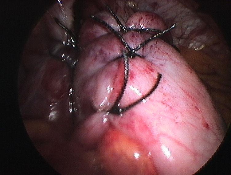 Oft leiden die Patienten erheblich am Zurücklaufen der Magensäure in die Speiseröhre, bei längerem Andauern der Erkrankung bildet sich nicht selten eine Verengung der Speiseröhre aus, in seltenen Fällen auch wandelt sich die normale Speiseröhrenchleimhaut krankhaft um (sog. "Barrett-Ösophagus"), was die Entstehung von Speiseröhrenkrebs begünstigen kann. Der Behandlung dieser Erkrankung ist daher größte Aufmerksamkeit zu widmen! Eine medikamentöse Behandlung kann die Magensäuresekretion reduzieren und somit das Krankheitsbild lindern. Oft muß allerdings die Dosierung der Medikamente, die lebenslang eingenommen werden müssen, stetig gesteigert werden, was nicht unerhebliche Nebenwirkungen mit sich bringen kann. Unter anderem sind chronische Magenschleimhautentzündungen durch die dauerhafte Einnahme dieser Medikamente nicht selten. Der einzige Weg, die Ursache der Speiseröhrenentzündung dauerhaft zu beseitigen und die Patienten medikamentenfrei zu machen, ist die operative Behandlung des Zwerchfellbruchs. An Kliniken, die große Erfahrung in der minimal invasiven Chirurgie besitzen, kann diese Operation heute auch laparoskopisch in der "Schlüssellochtechnik", also schonend ohne großen Bauchschnitt durchgeführt werden. Dabei wird der Magen wieder in den Bauchraum zurückgeholt und die Lücke im Zwerchfell verschlossen. Zusätzlich wird aus dem oberen Magenanteil eine Manschette gebildet, die das Zurücklaufen der Magensäure in die Speiseröhre regelmäßig verhindert.